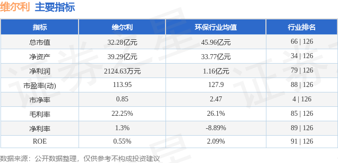 维尔利2023年三季报显示,公司主营收入15.93亿元,同比上升9.28%;归母净利润2124.63万元,同比下降47.33%;扣非净利润704.82万元,同比下降56.51%;其中2023年第三季度,公司单季度主营收入4.54亿元,同比上升2.13%;单季度归母净利润456.93万元,同比下降26.74%;单季度扣非净利润286.03万元,同比上升55.94%;负债率58.4%,投资收益3250.45万元,财务费用9076.13万元,毛利率22.25%。维尔利(300190)主营业务:针对所需处理垃圾渗滤液处理项目的渗滤液水质及其变化情况、处理规模等特征,依托分体式膜生化反应器及其衍生工艺等高效渗滤液处理工艺,为客户提供垃圾渗滤液处理系统综合解决方案,即通过工艺方案优化设计和整体统筹,提供渗滤液处理工程施工、设备集成和销售、现场系统集成、调试运行,以及后续运营和相关技术咨询服务等,为客户的垃圾渗滤液达标处理提供高质量的一体化专业服务。