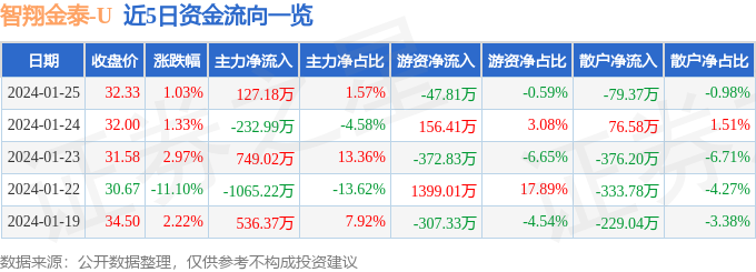 智翔金泰(688443)1月25日主力资金净买入127.18万元