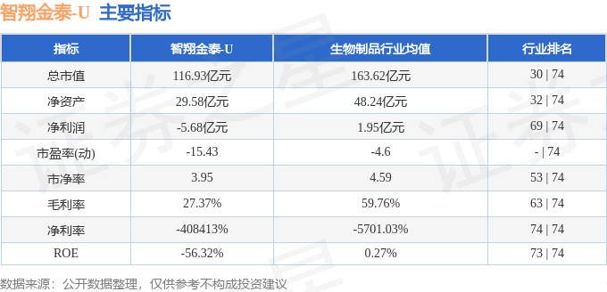 智翔金泰2023年三季报显示,公司主营收入13.91万元,同比下降69.59%;归母净利润-5.68亿元,同比下降26.34%;扣非净利润-5.75亿元,同比下降25.31%;其中2023年第三季度,公司单季度主营收入0.63万元,同比下降0.0%;单季度归母净利润-1.8亿元,同比上升6.28%;单季度扣非净利润-1.84亿元,同比上升5.82%;负债率20.81%,财务费用1631.41万元,毛利率27.37%。智翔金泰(688443)主营业务:抗体药物的研发、生产与销售。