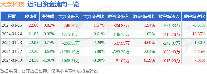 1月25日的资金流向数据方面,主力资金净流入246.5万元,占总成交额1.57%,游资资金净流入304.83万元,占总成交额1.94%,散户资金净流出551.33万元,占总成交额3.51%。