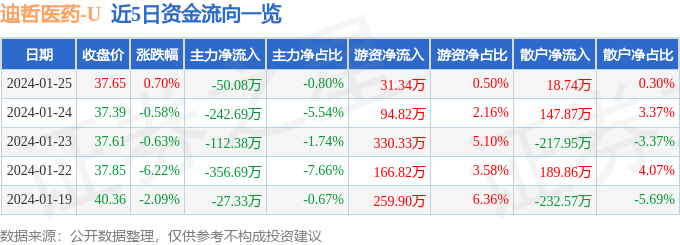 迪哲医药(688192)1月25日主力资金净卖出50.08万元