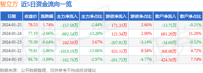 1月25日的资金流向数据方面,主力资金净流出157.58万元,占总成交额2.44%,游资资金净流入171.33万元,占总成交额2.66%,散户资金净流出13.75万元,占总成交额0.21%。