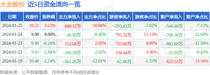 1月25日的资金流向数据方面,主力资金净流入840.12万元,占总成交额10.94%,游资资金净流出293.63万元,占总成交额3.82%,散户资金净流出546.48万元,占总成交额7.12%。