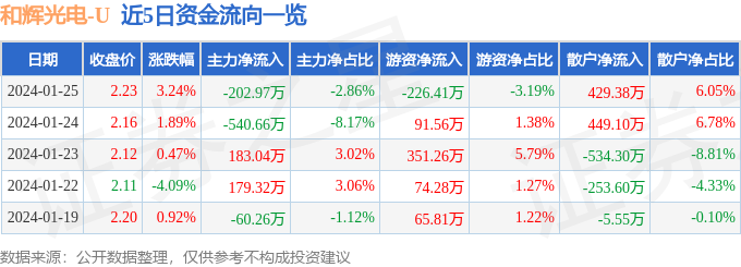 股票行情快报:和辉光电(688538)1月25日主力资金净卖出202.97万元
