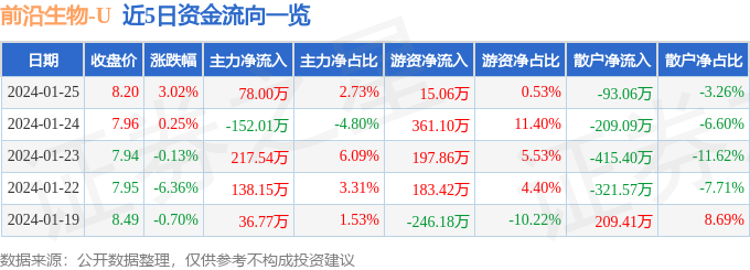 股票行情快报:前沿生物(688221)1月25日主力资金净买入78.00万元