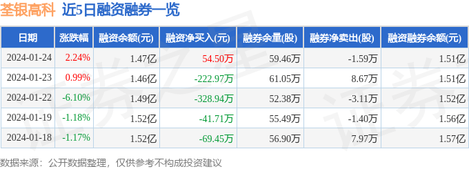 荃银高科融资融券信息显示,融资方面,当日融资买入404.07万元,融资偿还349.57万元,融资净买入54.5万元。融券方面,融券卖出6.83万股,融券偿还8.42万股,融券余量59.46万股,融券余额434.67万元。融资融券余额1.51亿元。近5日融资融券数据一览见下表: