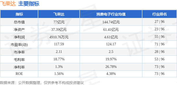 该股主要指标及行业内排名如下:
