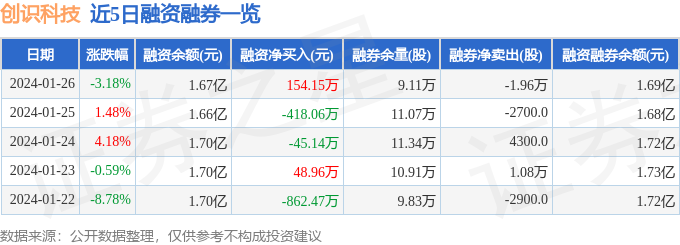 创识科技融资融券信息显示,融资方面,当日融资买入3174.41万元,融资偿还3020.27万元,融资净买入154.15万元。融券方面,融券卖出1.11万股,融券偿还3.07万股,融券余量9.11万股,融券余额205.07万元。融资融券余额1.69亿元。近5日融资融券数据一览见下表:
