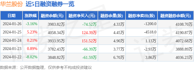 财经消息,截至2024年1月26日收盘,华兰股份(301093)报收于28.84元,下跌3.16%,换手率0.99%,成交量9525.0手,成交额2783.63万元。