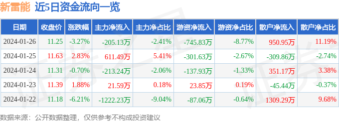 新雷能(300593)1月26日主力资金净卖出205.13万元