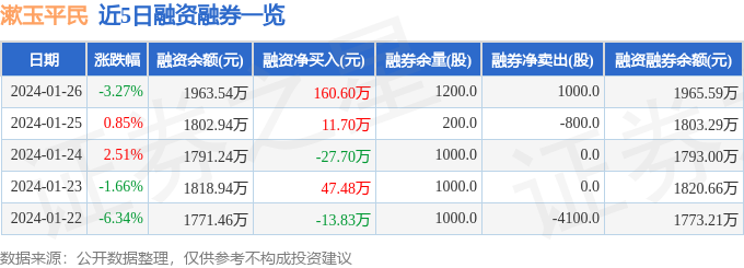 漱玉平民融资融券信息显示,融资方面,当日融资买入200.51万元,融资偿还39.91万元,融资净买入160.6万元。融券方面,融券卖出1000.0股,融券偿还0.0股,融券余量1200.0股,融券余额2.06万元。融资融券余额1965.59万元。近5日融资融券数据一览见下表: