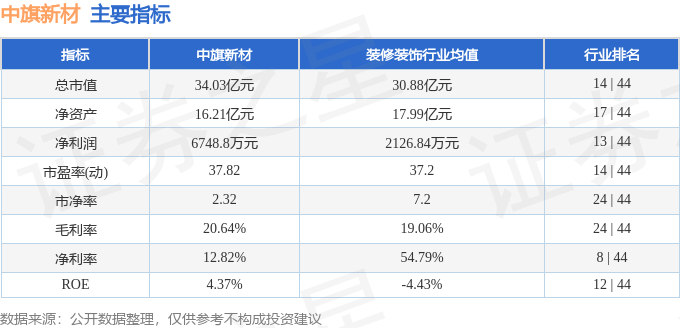 该股主要指标及行业内排名如下: