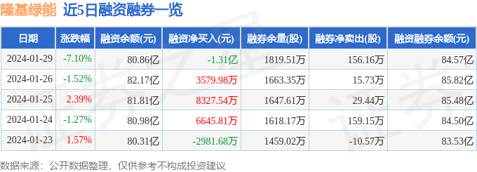 隆基绿能融资融券信息显示,融资方面,当日融资买入5.15亿元,融资偿还6.45亿元,融资净偿还1.31亿元。融券方面,融券卖出332.55万股,融券偿还176.4万股,融券余量1819.51万股,融券余额3.71亿元。融资融券余额84.57亿元。近5日融资融券数据一览见下表: