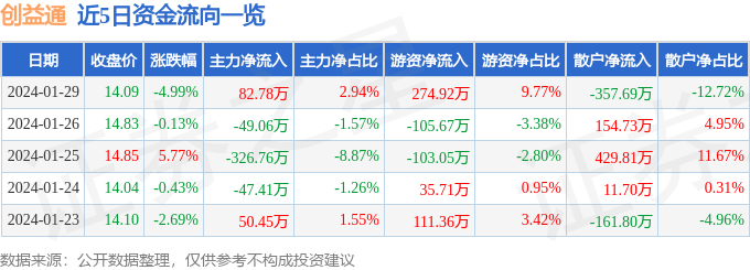 股票行情快报:创益通(300991)1月29日主力资金净买入82.78万元