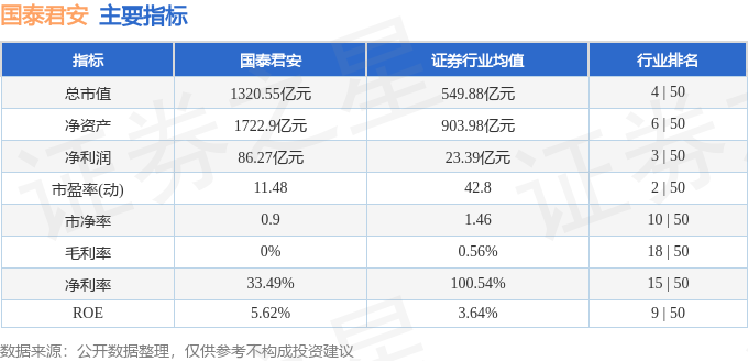 国泰君安2023年三季报显示,公司主营收入270.29亿元,同比上升1.18%;归母净利润86.27亿元,同比上升2.38%;扣非净利润79.27亿元,同比上升1.02%;其中2023年第三季度,公司单季度主营收入86.96亿元,同比上升21.44%;单季度归母净利润28.86亿元,同比上升40.44%;单季度扣非净利润25.17亿元,同比上升21.08%;负债率80.41%,投资收益80.75亿元。国泰君安(601211)主营业务:证券经纪;证券自营;证券承销与保荐;证券投资咨询;与证券交易、证券投资活动有关的财务顾问;融资融券业务;证券投资基金代销;代销金融产品业务;为期货公司提供中间介绍业务;股票期权做市业务;中国证监会批准的其他业务。