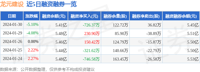 龙元建设融资融券信息显示,融资方面,当日融资买入552.79万元,融资偿还1279.16万元,融资净偿还726.37万元。融券方面,融券卖出42.27万股,融券偿还5.45万股,融券余量122.72万股,融券余额411.1万元。融资融券余额5.45亿元。近5日融资融券数据一览见下表: