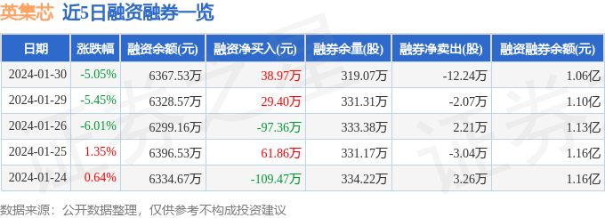 英集芯融资融券信息显示,融资方面,当日融资买入204.98万元,融资偿还166.02万元,融资净买入38.97万元。融券方面,融券卖出6.17万股,融券偿还18.41万股,融券余量319.07万股,融券余额4259.61万元。融资融券余额1.06亿元。近5日融资融券数据一览见下表: