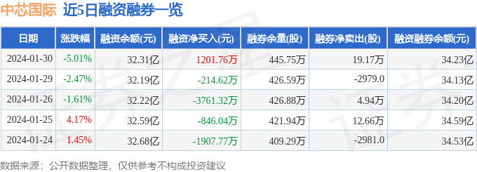 中芯国际融资融券信息显示,融资方面,当日融资买入1.01亿元,融资偿还8913.84万元,融资净买入1201.76万元。融券方面,融券卖出32.5万股,融券偿还13.34万股,融券余量445.75万股,融券余额1.92亿元。融资融券余额34.23亿元。近5日融资融券数据一览见下表: