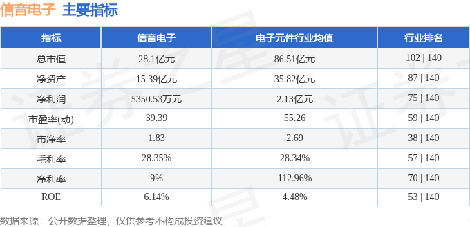 该股主要指标及行业内排名如下:
