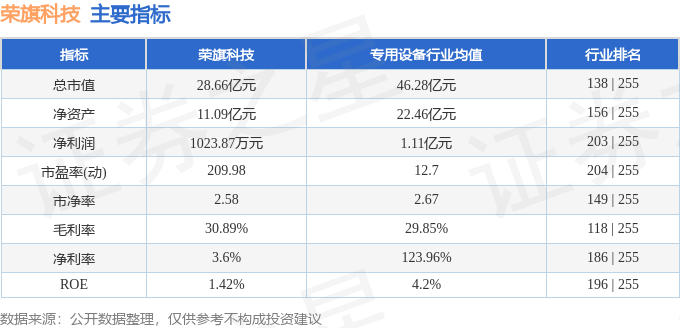 荣旗科技2023年三季报显示,公司主营收入2.85亿元,同比上升31.96%;归母净利润1023.87万元,同比下降70.28%;扣非净利润300.81万元,其中2023年第三季度,公司单季度主营收入1.17亿元,同比上升5.31%;单季度归母净利润751.65万元,同比下降65.65%;单季度扣非净利润218.37万元,负债率19.91%,投资收益498.2万元,财务费用-546.82万元,毛利率30.89%。荣旗科技(301360)主营业务:从事智能装备的研发、设计、生产、销售及技术服务。