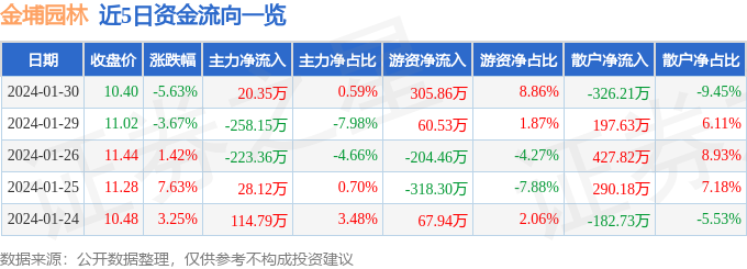 金埔园林(301098)1月30日主力资金净买入20.35万元