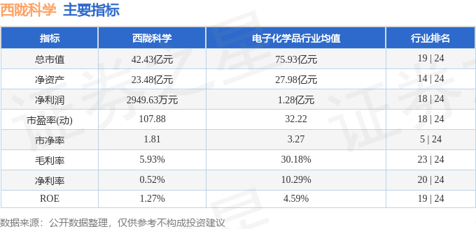 该股主要指标及行业内排名如下: