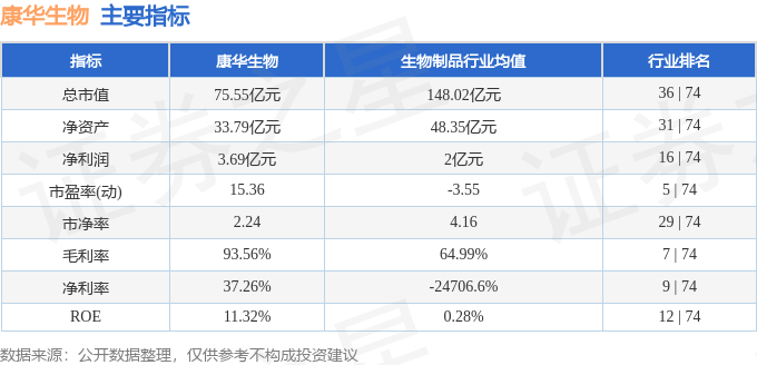 康华生物2023年三季报显示,公司主营收入9.9亿元,同比下降6.12%;归母净利润3.69亿元,同比下降23.66%;扣非净利润3.6亿元,同比下降22.42%;其中2023年第三季度,公司单季度主营收入3.56亿元,同比下降9.92%;单季度归母净利润1.21亿元,同比下降27.98%;单季度扣非净利润1.27亿元,同比下降22.45%;负债率13.7%,财务费用-586.31万元,毛利率93.56%。康华生物(300841)主营业务:疫苗研发、生产及销售业务。