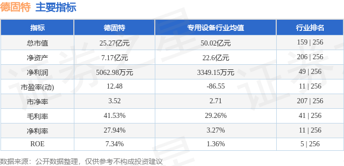 该股主要指标及行业内排名如下: