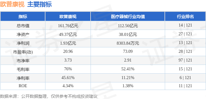 该股主要指标及行业内排名如下: