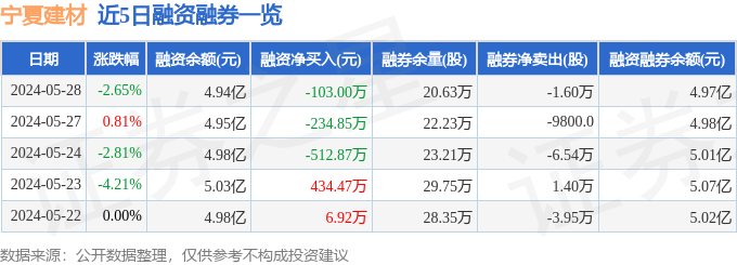 宁夏建材(600449)5月28日主力资金净卖出635.10万元
