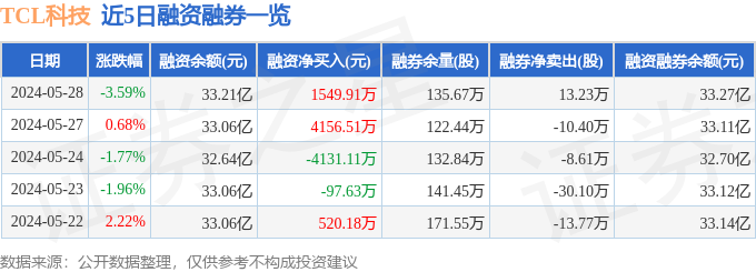 TCL科技融资融券信息显示,融资方面,当日融资买入1.87亿元,融资偿还1.72亿元,融资净买入1549.91万元。融券方面,融券卖出23.75万股,融券偿还10.52万股,融券余量135.67万股,融券余额583.38万元。融资融券余额33.27亿元。近5日融资融券数据一览见下表: