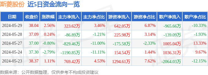 股票行情快报:斯菱股份(301550)5月29日主力资金净买入323.62万元