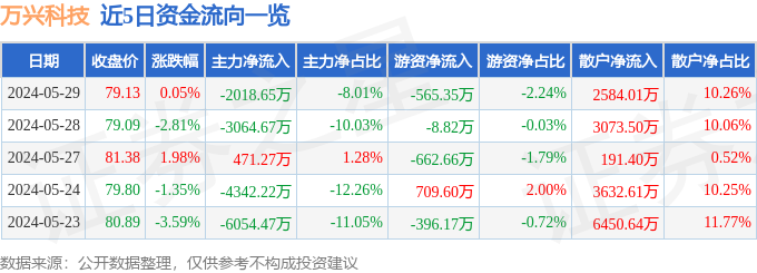 近5日资金流向一览见下表: