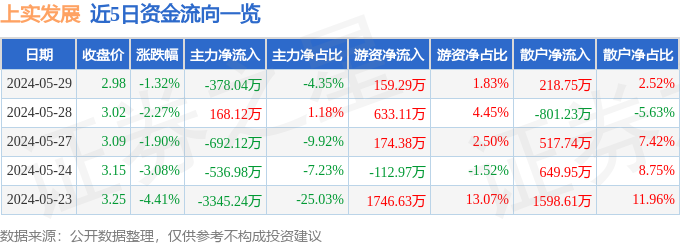 5月29日的资金流向数据方面,主力资金净流出378.04万元,占总成交额4.35%,游资资金净流入159.29万元,占总成交额1.83%,散户资金净流入218.75万元,占总成交额2.52%。