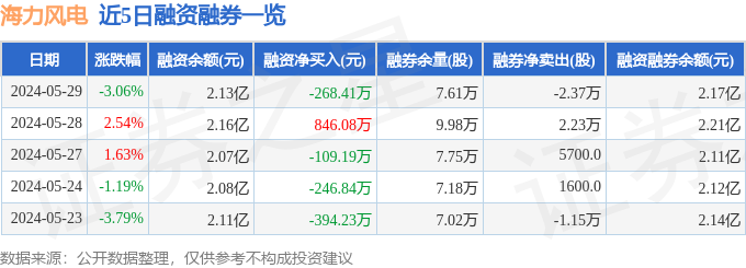 财经消息,截至2024年5月29日收盘,海力风电(301155)报收于49.7元,下跌3.06%,换手率3.37%,成交量2.99万手,成交额1.5亿元。