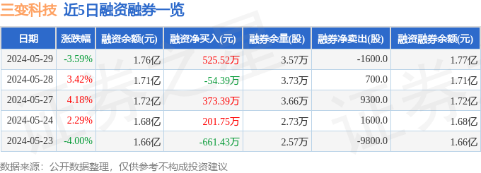 三变科技融资融券信息显示,融资方面,当日融资买入3051.21万元,融资偿还2525.69万元,融资净买入525.52万元。融券方面,融券卖出700.0股,融券偿还2300.0股,融券余量3.57万股,融券余额36.37万元。融资融券余额1.77亿元。近5日融资融券数据一览见下表: