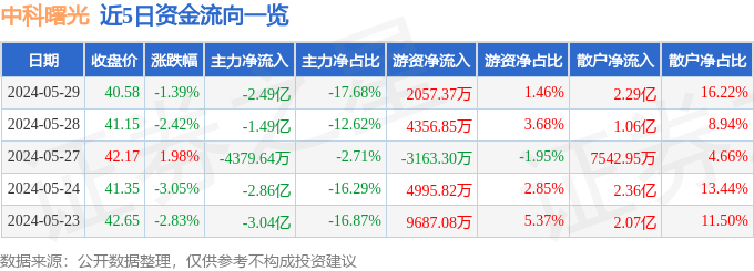 中科曙光(603019)5月29日主力资金净卖出2.49亿元