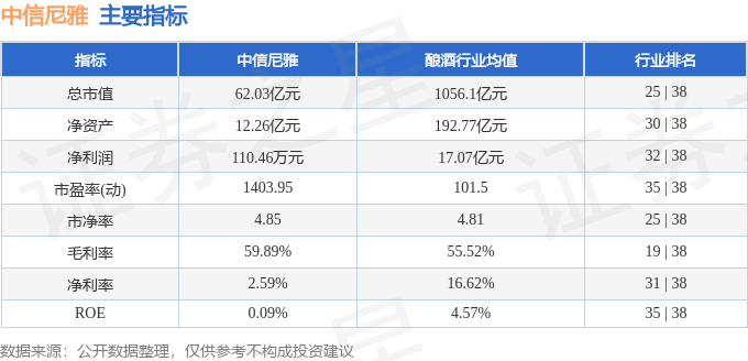 中信尼雅2024年一季报显示,公司主营收入3737.85万元,同比下降55.42%;归母净利润110.46万元,同比下降90.59%;扣非净利润12.3万元,同比下降98.88%;负债率10.85%,财务费用-9.91万元,毛利率59.89%。中信尼雅(600084)主营业务:葡萄种植、生产、销售。