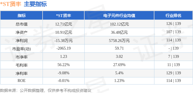 *ST贤丰2024年一季报显示,公司主营收入1664.99万元,同比下降20.3%;归母净利润-15.38万元,同比下降112.01%;扣非净利润-868.77万元,同比下降44.06%;负债率8.75%,投资收益-22.08万元,财务费用34.39万元,毛利率56.22%。*ST贤丰(002141)主营业务:兽用疫苗业务。