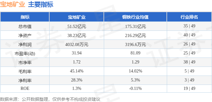 该股主要指标及行业内排名如下: