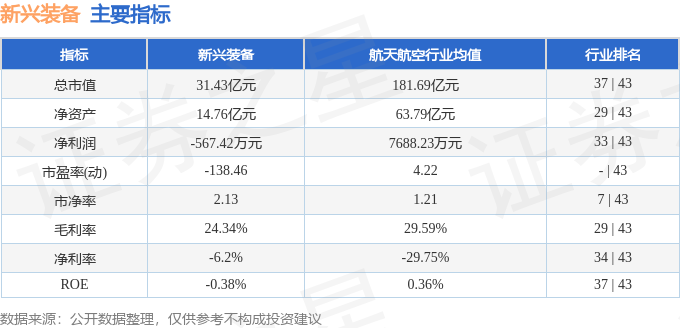 新兴装备2024年一季报显示,公司主营收入9160.39万元,同比上升107.7%;归母净利润-567.42万元,同比上升52.33%;扣非净利润-774.87万元,同比上升42.8%;负债率39.21%,投资收益68.05万元,财务费用-243.39万元,毛利率24.34%。新兴装备(002933)主营业务:以伺服控制技术为核心的航空装备产品的研发、生产、销售及相关服务。