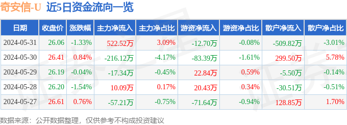 奇安信(688561)5月31日主力资金净买入522.52万元