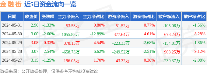 5月31日的资金流向数据方面,主力资金净流入53.53万元,占总成交额0.8%,游资资金净流入51.52万元,占总成交额0.77%,散户资金净流出105.06万元,占总成交额1.56%。