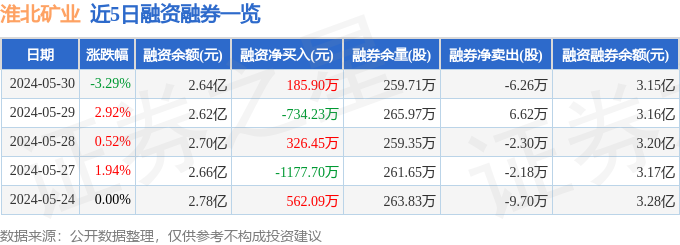 财经消息,截至2024年5月30日收盘,淮北矿业(600985)报收于19.42元,下跌3.29%,换手率0.66%,成交量17.84万手,成交额3.51亿元。