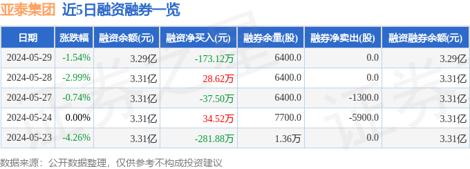 亚泰集团融资融券信息显示,融资方面,当日融资买入67.36万元,融资偿还240.49万元,融资净偿还173.12万元。融券方面,融券卖出0.0股,融券偿还0.0股,融券余量6400.0股,融券余额0.82万元。融资融券余额3.29亿元。近5日融资融券数据一览见下表: