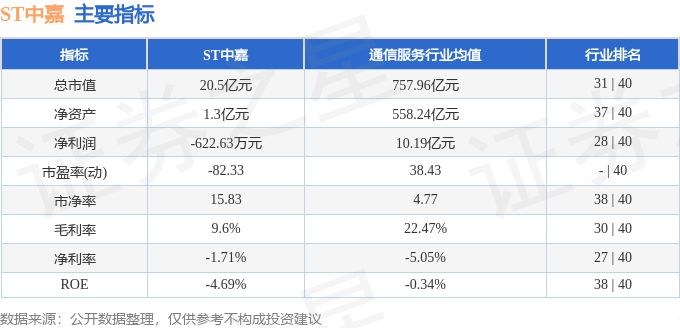 ST中嘉2024年一季报显示,公司主营收入3.64亿元,同比上升2.21%;归母净利润-622.63万元,同比上升9.19%;扣非净利润-606.84万元,同比上升29.08%;负债率85.14%,财务费用81.14万元,毛利率9.6%。ST中嘉(000889)主营业务:信息智能传输和通信网络维护。