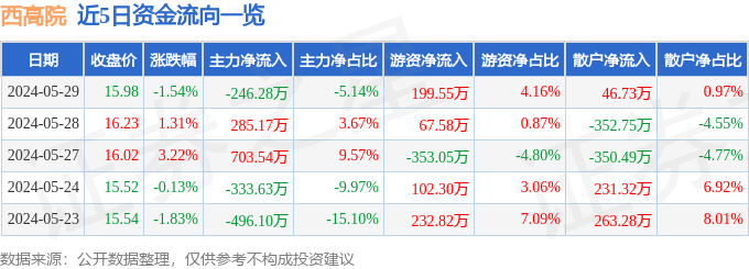 西高院(688334)5月29日主力资金净卖出246.28万元