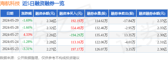 海航科技融资融券信息显示,融资方面,当日融资买入623.99万元,融资偿还431.8万元,融资净买入192.19万元。融券方面,融券卖出1.36万股,融券偿还19.2万股,融券余量114.62万股,融券余额267.06万元。融资融券余额2.37亿元。近5日融资融券数据一览见下表: