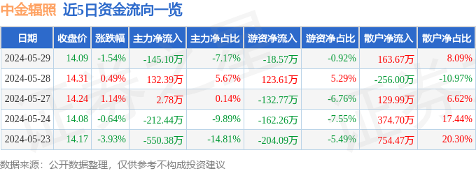 5月29日的资金流向数据方面,主力资金净流出145.1万元,占总成交额7.17%,游资资金净流出18.57万元,占总成交额0.92%,散户资金净流入163.67万元,占总成交额8.09%。