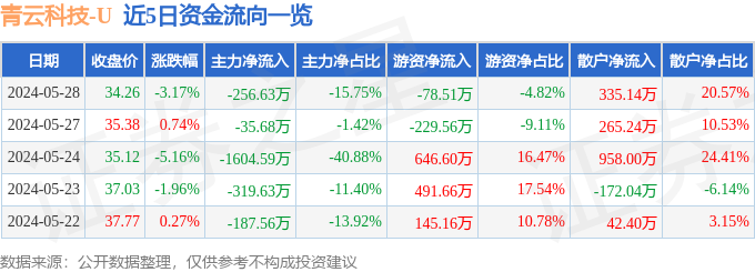 青云科技(688316)5月28日主力资金净卖出256.63万元